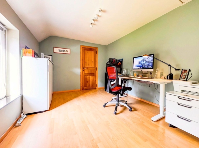 Étage 1 : (parquet stratifié ou exotique) Hall (+/- 10 m²), 4 chambres avec (+/- 36/16/15/12 m²), dont une avec placards, et une avec dressing équipé, bureau (+/- 11 m²), salle de douches (+/- 6 m² avec lavabo, douche italienne, WC.
