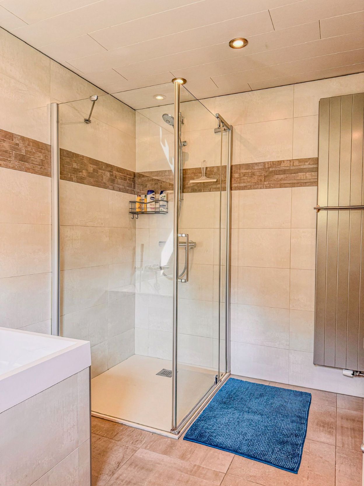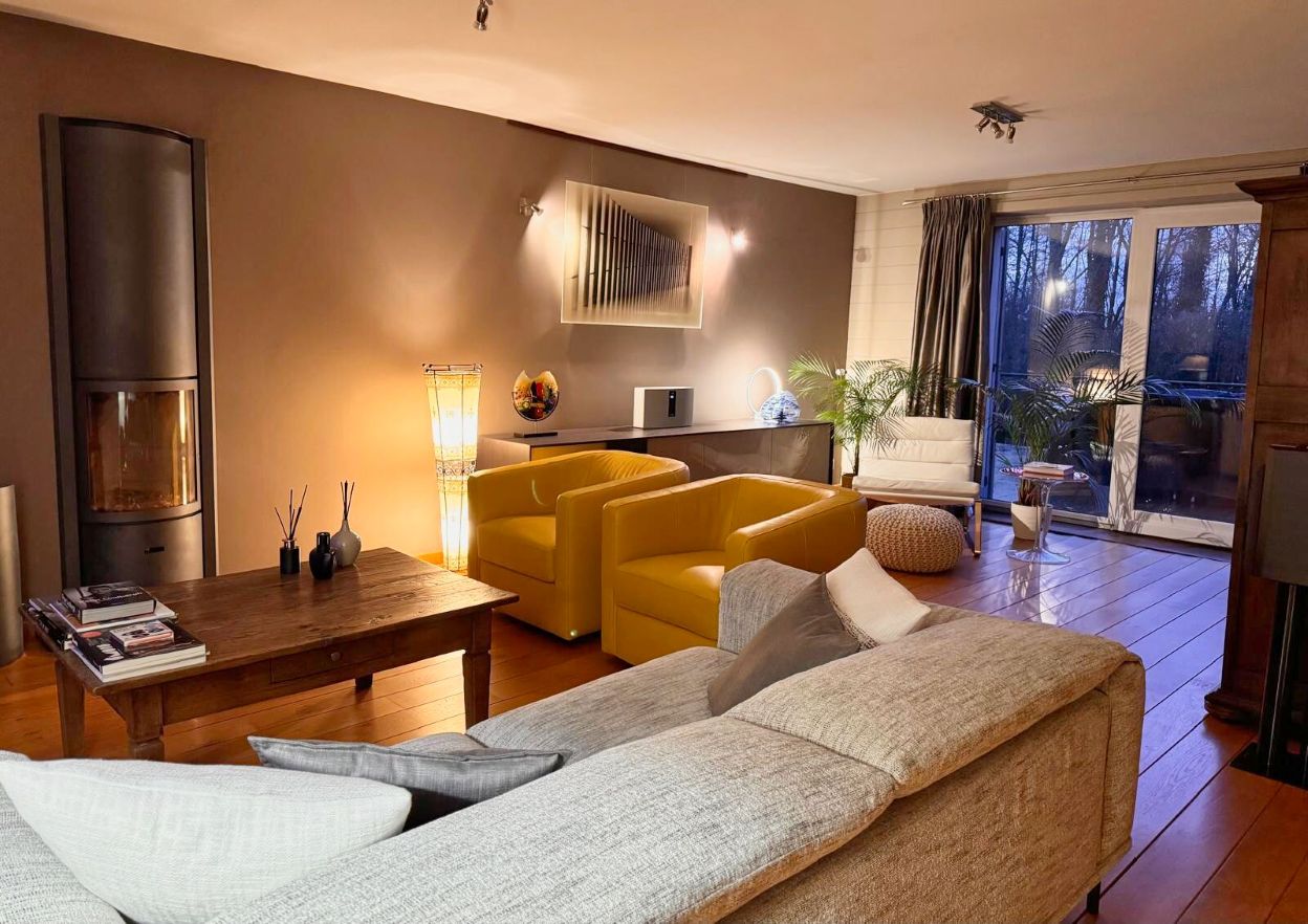 La villa développe une superficie brute de +/- 240 m² habitable/4 chambres + dressing et comprend une vaste terrasse ensoleillée de +/-66 m² le tout sur un splendide terrain arboré de +/-14 ares 50 ca. Un double garage et 2 places de parking complète l’ensemble