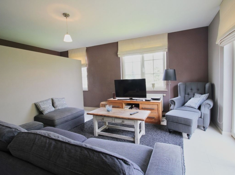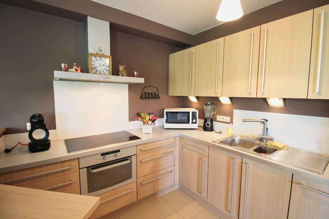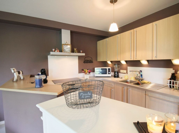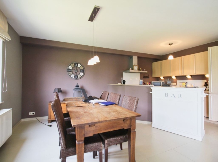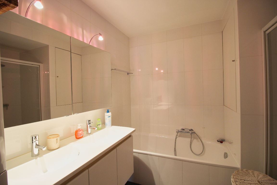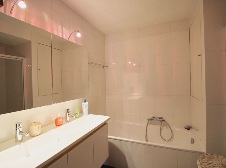 Il se compose d’un hall d’entrée avec WC séparé, d’une cuisine US hyper équipée (+/-6 m²) avec taques, four, frigo/congélateur, lave-vaisselle), d’un lumineux séjour carrelé (+/- 42 m²) avec coin bureau/rangement séparé d’une cloison, de 2 chambres (dont une avec dressing intégré) de +/- 16/12 m², d’une salle de bains (+/-8 m²) avec coin machine comprenant un bain, une douche séparée, 2 lavabos.