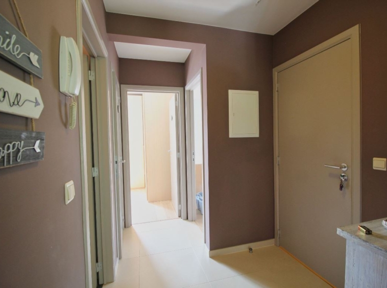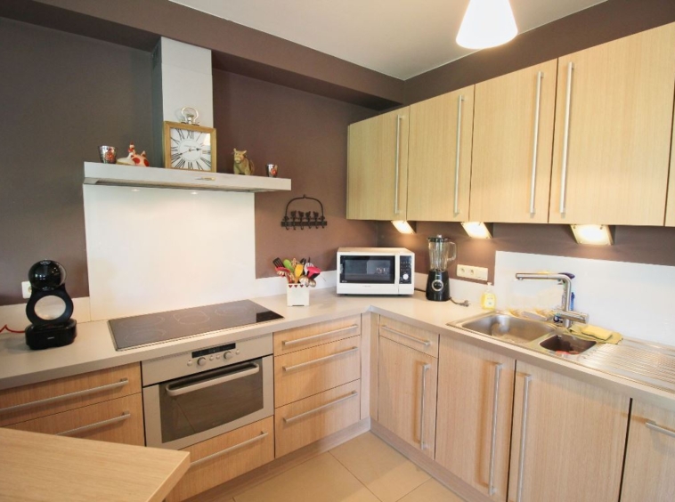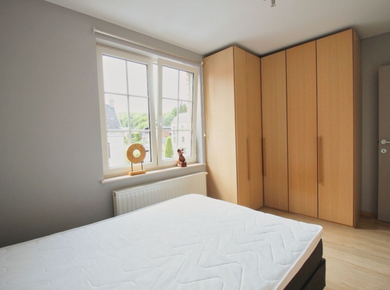 Grande terrasse (+/- 6 m²) orientée sud-ouest, cave de +/- 15 m², une place de parking extérieure privative.