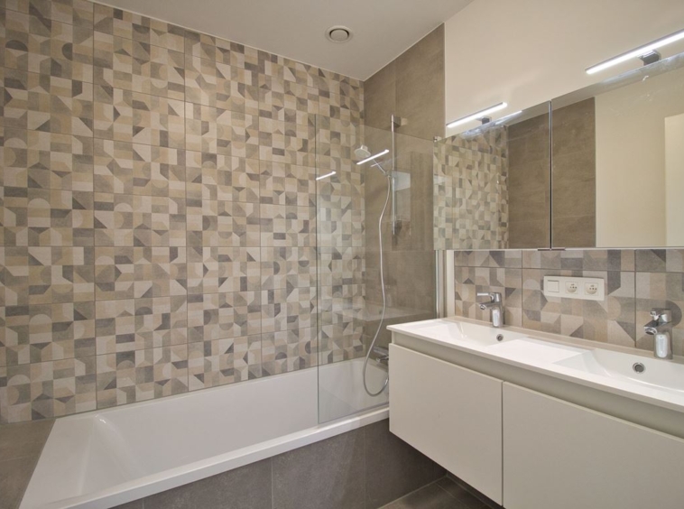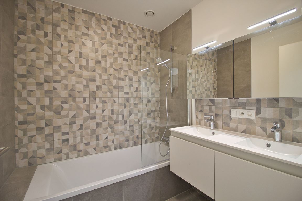 Hall d’entrée (+/- 7 m²) avec WC séparé. Séjour carrelé (+/- 30 m²), cuisine US hyper équipée (+/- 6.5 m²), buanderie (+/- 3.5 m²), salle de douches (bain/douche, meuble double lavabo) de +/- 4 m², 2 chambres carrelée (+/- 14/10 m²).