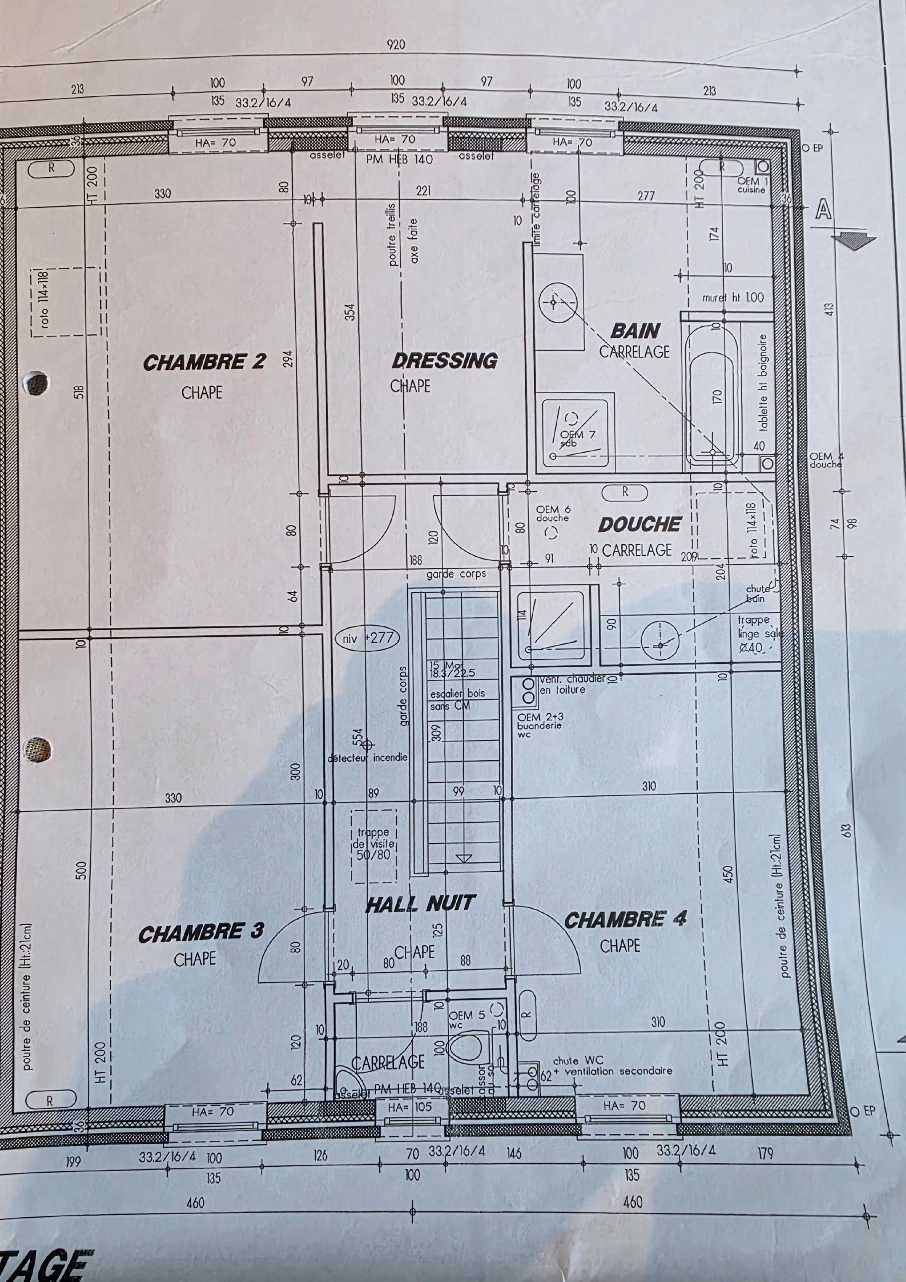 Etage +1: Hall (+/- 10.5 m²), 2 chambres (+/- 16.5/13.5 m²), une suite parentale (chambre de +/- 17 m² + dressing (+/- 6 m²),+ salle de bains et douches (+/- 7 m²)