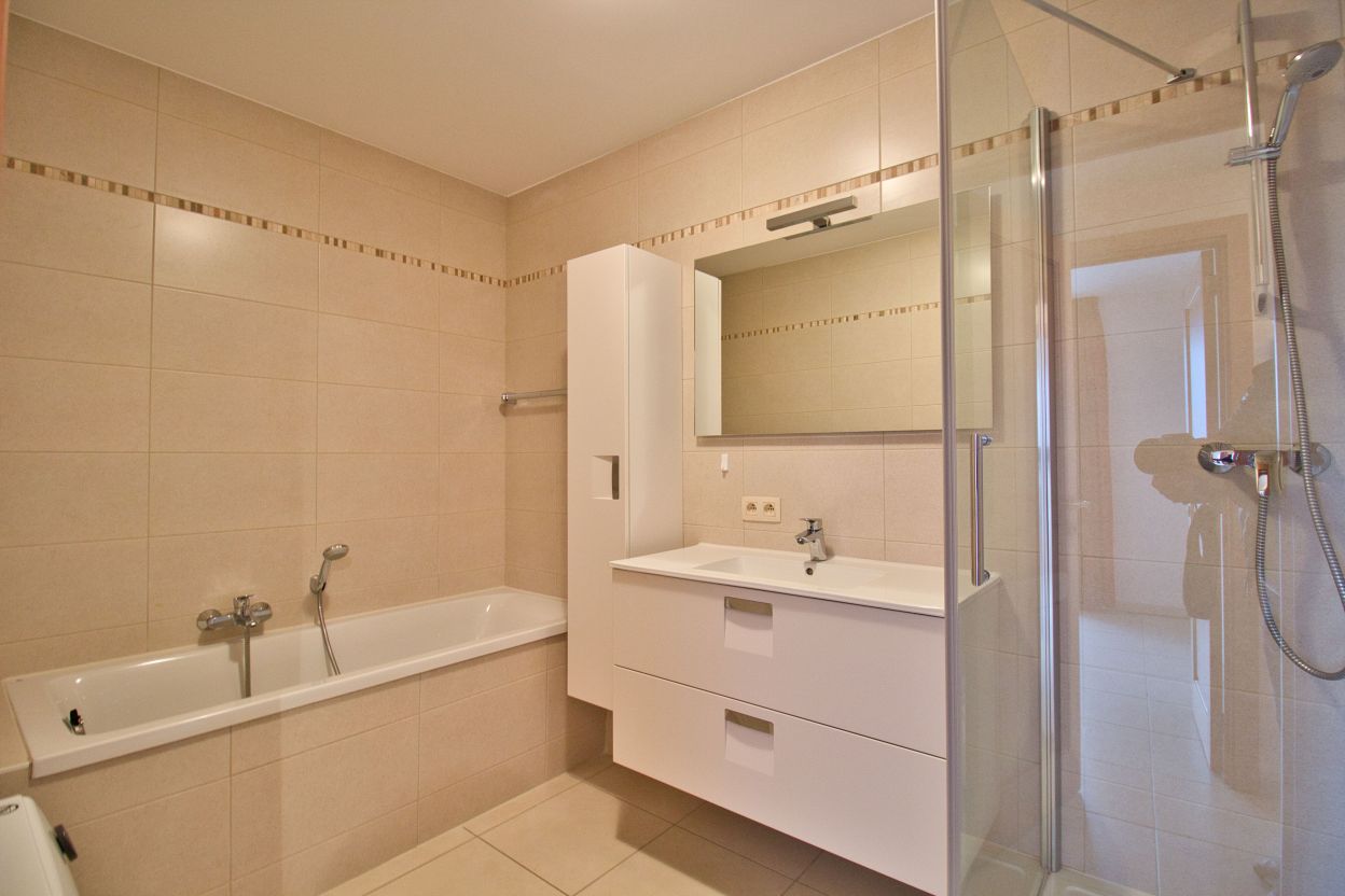 Il développe 75 m² brut et comprend un hall d’entrée (+/- 2.5 m²), un lumineux séjour carrelé (+/-21 m²), une cuisine US hyper-équipée (meubles, taques vitro, hotte, frigo/congélateur, lave-vaisselle) de +/- 5.5 m², un hall de nuit (+/- 4 m²), un WC séparé (+/- 1.5 m²) une salle de bains (douche et baignoire, meuble lavabo) de +/- 6 m², une buanderie (+/- 2.5 m²) , deux belles chambres carrelée dont une avec dressing (+/- 12/8 m²), une terrasse de +/- 9 m². Une cave privative. Nombreux emplacements de parkings aux alentours.